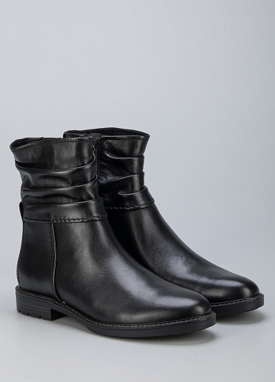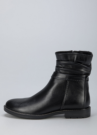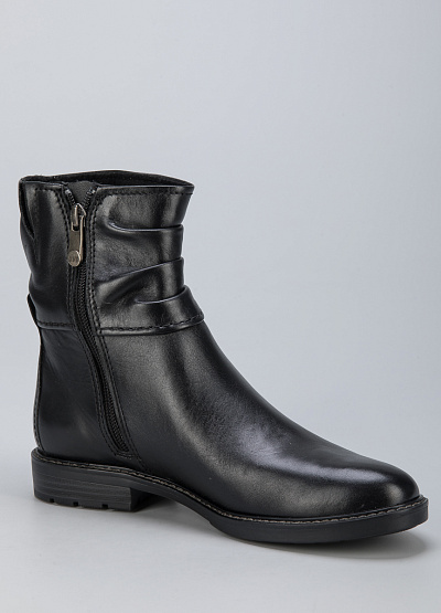 • Женские ботинки из натуральной кожи от бренда Marco Tozzi. Закругленный носок. Боковая молния. Плоская подошва на низком каблуке.