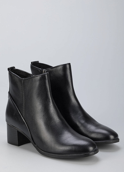 • Женские ботинки из натуральной кожи от бренда Marco Tozzi. Закругленный носок. Замок на молнии сбоку. Петли для подтягивания сзади. Каблук средней высоты.