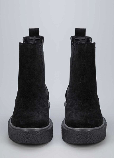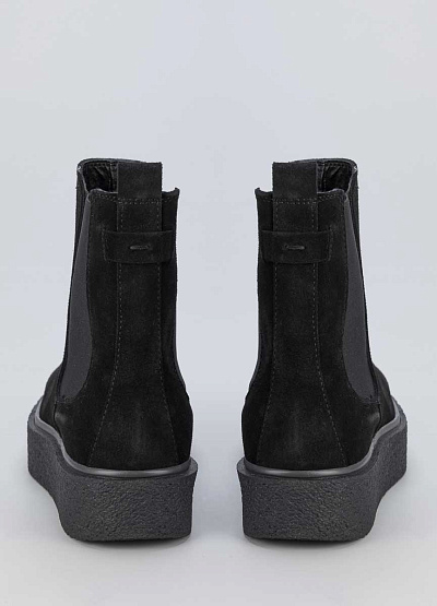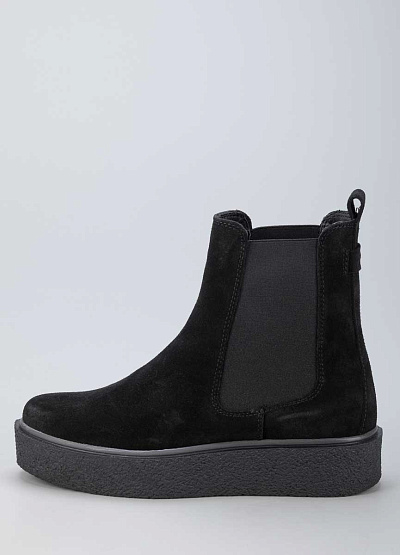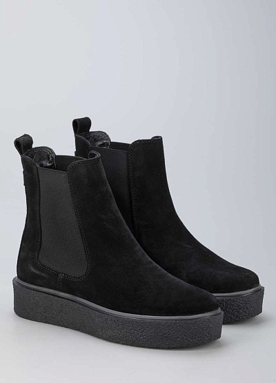 • Женские ботинки из натуральной замши от бренда Marco Tozzi. Закругленный носок. Эластичные вставки по бокам. Петли для подтягивания сзади. Широкая подошва.