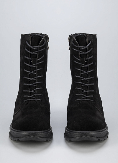 • Женские ботинки из натуральной кожи от бренда Polaris. Высокая шнуровка в тон. Боковая молния. Закругленный носок. Плоская рифленая подошва.