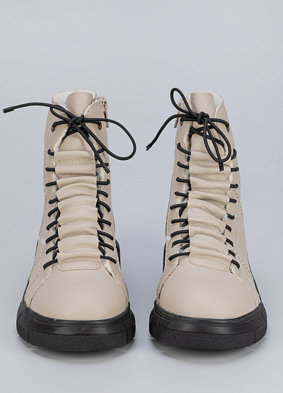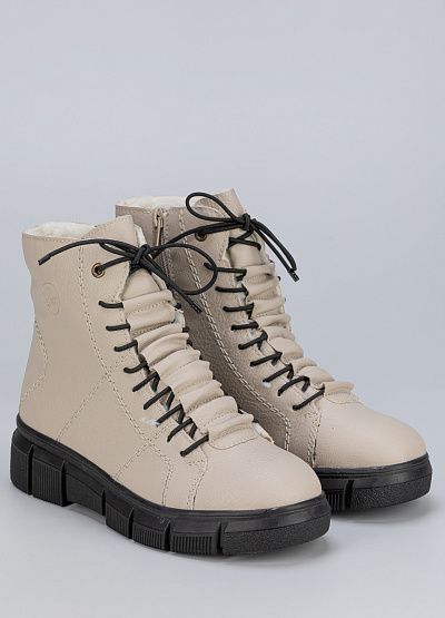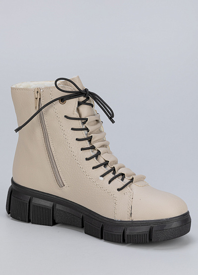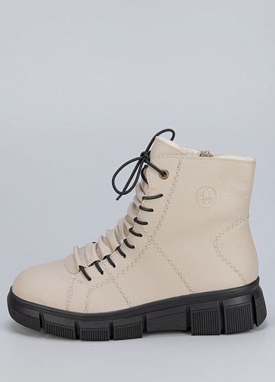 Женские ботинки кремового цвета из экокожи от бренда Rieker. Модель имеет особое оформление с закругленным носом и низким каблуком. Удобная шнуровка поможет при надевании. Ботинки сочетают в себе функциональность и модные элементы, подчеркивая индивидуальность.