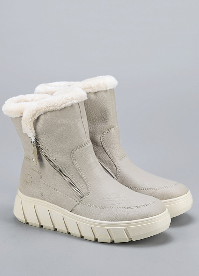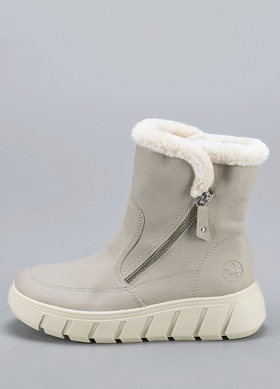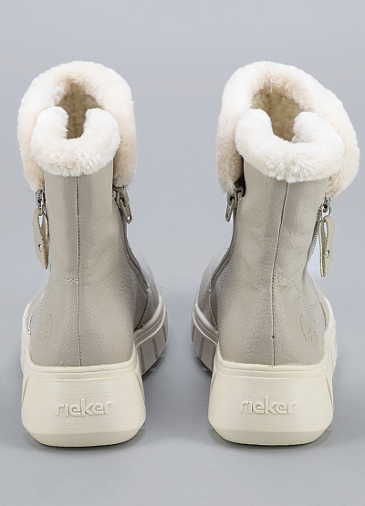 • Женские ботинки кремового цвета из текстиля и экокожи от бренда Rieker. Модель на широкой рифленной подошве гарантирует идеальную поддержку стопы, делая каждую вашу прогулку легкой и комфортной. Их элегантный дизайн подчеркнет вашу индивидуальность и стиль.