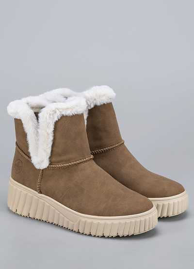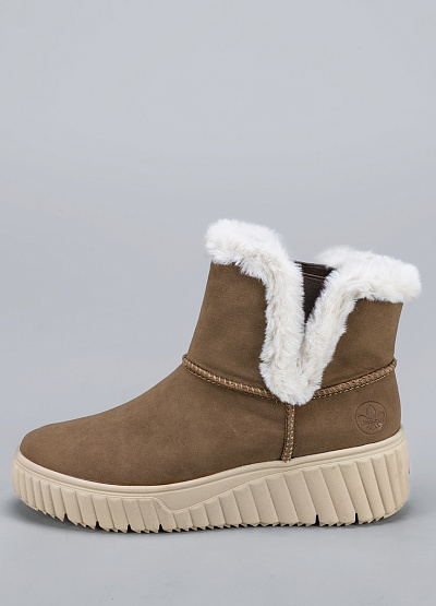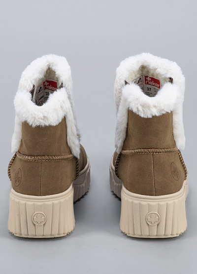 • Женские ботинки коричневого цвета из экокожи и текстиля от бренда Rieker. Модель на широкой рифленной подошве гарантирует идеальную поддержку стопы, делая каждую вашу прогулку легкой и комфортной. Их элегантный дизайн подчеркнет вашу индивидуальность и стиль.