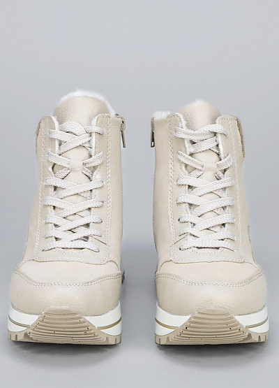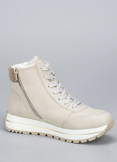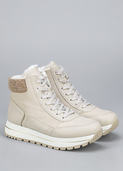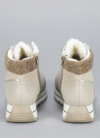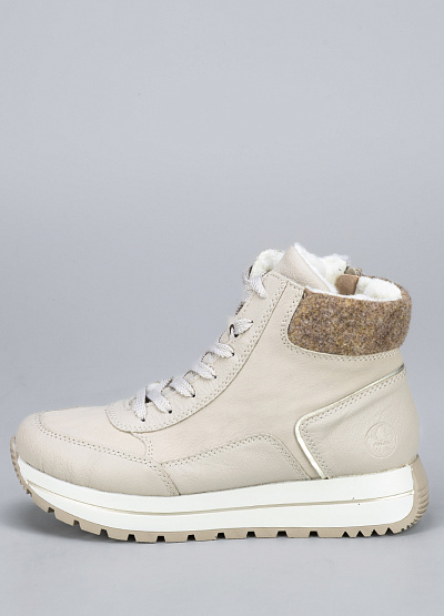 • Женские ботинки кремового цвета из экокожи и текстиля от бренда Rieker. Модель на плоской подошве гарантирует идеальную поддержку стопы, делая каждую вашу прогулку легкой и комфортной. Их элегантный дизайн подчеркнет вашу индивидуальность и стиль.