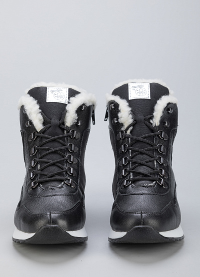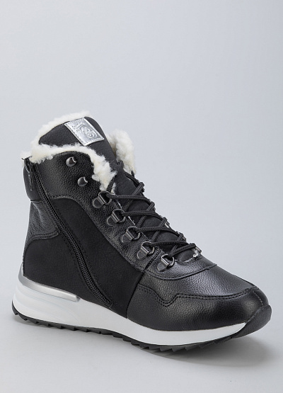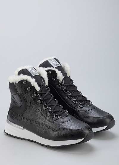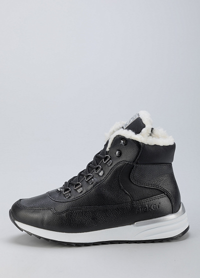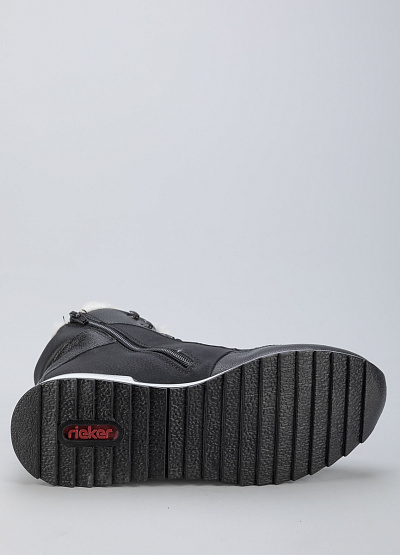 • Женские ботинки из экокожи от бренда Rieker. Открытая шнуровка в тон. Закругленный носок. Боковая молния. Тисненый логотип сбоку. Логотип на язычке. Меховая отделка внутри. Плоская рифленая подошва.
