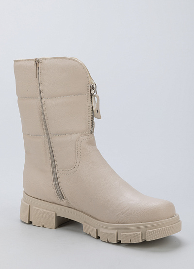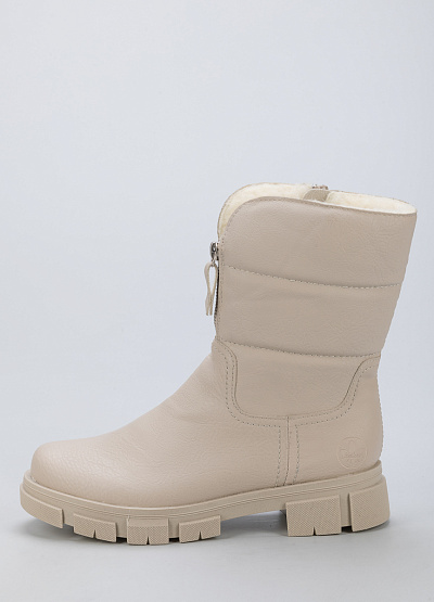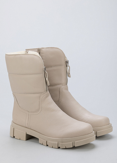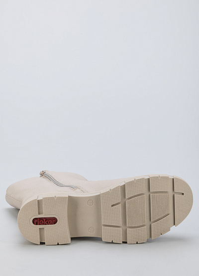 • Женские ботинки из экокожи от бренда Rieker. Закругленный носок. Замок на молнии по центру. Боковая молния. Плоская рифленая подошва.