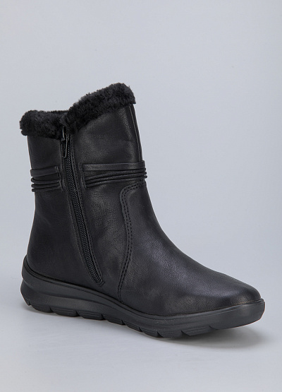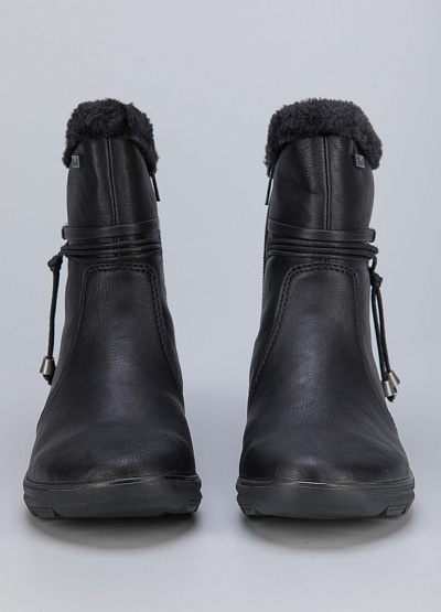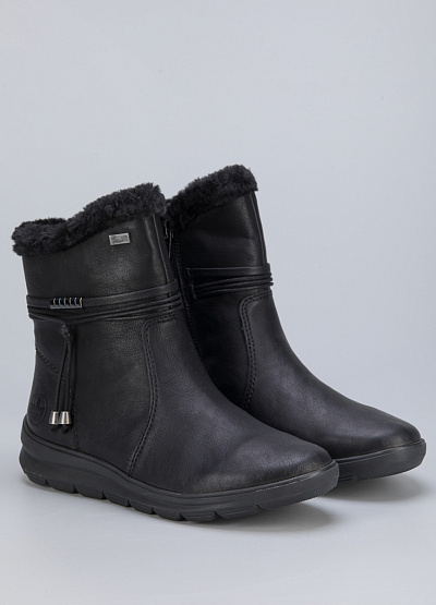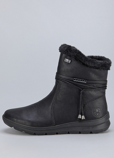 • Женские ботинки от бренда Rieker. Закругленный носок. Боковая молния сбоку. Логотип сбоку. Декоративный шнурок с брелком вокруг голени. Рифленая подошва.
