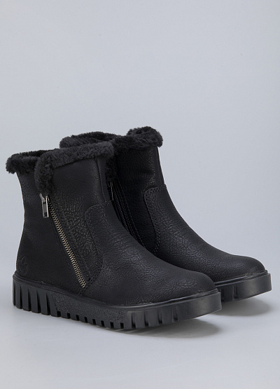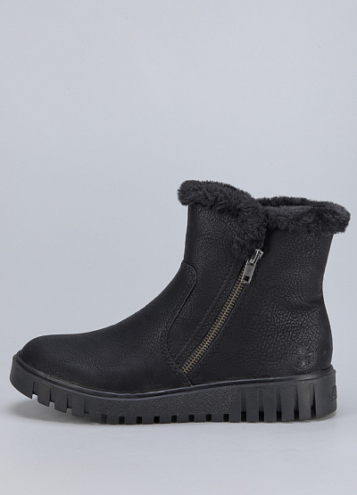 • Женские ботинки от бренда Rieker. Закругленный носок. Молния с двкх сторон. Логотип сбоку. Массивная рифленая подошва.