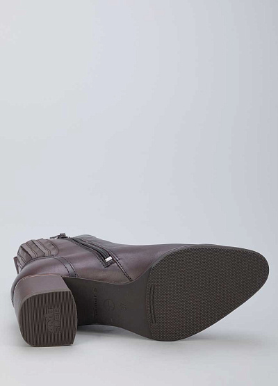 • Женские ботинки из натуральной кожи и экокожи от бренда Tamaris. Открытая шнуровка в тон. Закругленный носок. Замок на молнии сбоку. Эластичные вставки на пятке. Петли для подтягивания сзади. Плоская подошва на устойчивом каблуке с металлической вставкой.