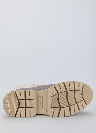 • Женские ботинки из натуральной кожи и экокожи от бренда Tamaris. Открытая шнуровка в тон. Закругленный носок. Эластичные вставки по бокам. Петли для подтягивания сзади и спереди. Массивная рифленая подошва.