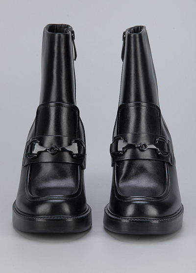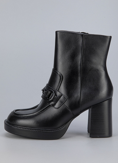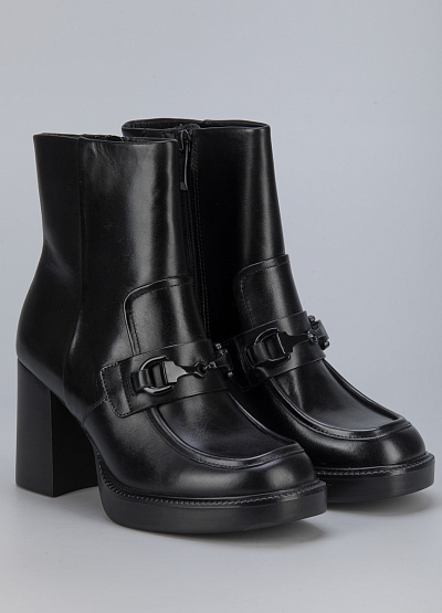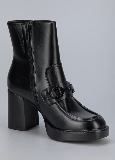 • Женские ботинки из натуральной кожи от бренда Tamaris. Закругленный носок. Декоративный ремешок с декором. Боковая молния. Широкая подошва на устойчивом каблуке.