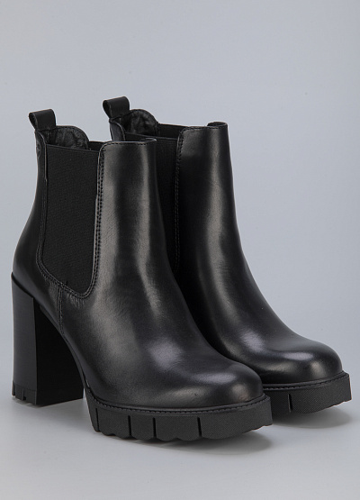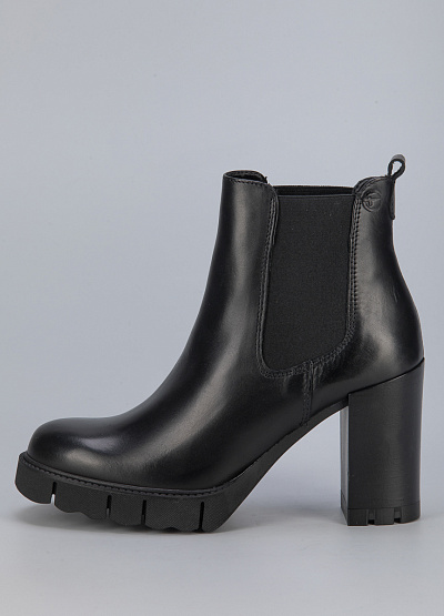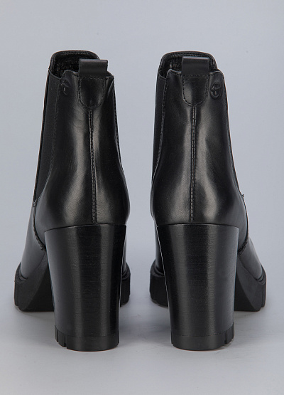• Женские ботинки из натуральной кожи от бренда Tamaris. Закругленный носок. Эластичные вставки по бокам. Тисненый логотип сбоку. Петли для подтягивания сзади. Массивная рифленая подошва на устойчивом каблуке.