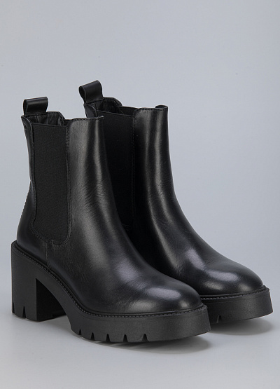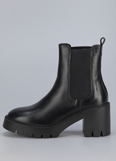 • Женские ботинки из натуральной кожи от бренда Tamaris. Закругленный носок. Эластичные вставки по бокам. Тисненый логотип сбоку. Петли для подтягивания сзади. Массивная рифленая подошва на устойчивом каблуке.