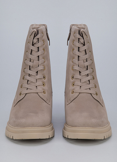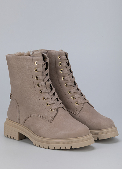 • Женские ботинки из натуральной кожи от бренда Tamaris. Закругленный носок. Открытая шнуровка в тон. Боковая молния. Массивная рифленая подошва.