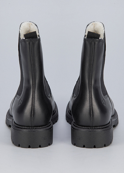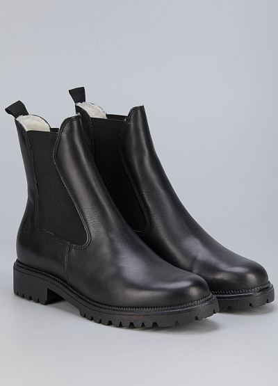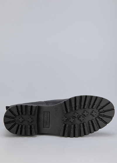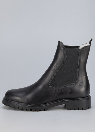• Женские ботинки из натуральной кожи от бренда Tamaris. Закругленный носок. Эластичные вставки по бокам. Петли для подтягивания сзади. Тисненый логотип сбоку. Плоская рифленая подошва на низком каблуке.