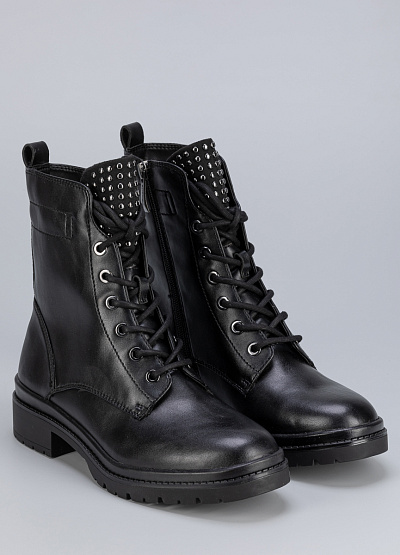 • Женские ботинки черного цвета из экокожи от бренда Tamaris. Модель гарантирует идеальную поддержку стопы, делая каждую вашу прогулку легкой и комфортной. Их элегантный дизайн подчеркнет вашу индивидуальность и стиль, за счет металлической фурнитуры на язычке.