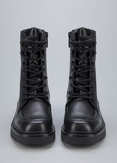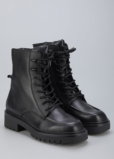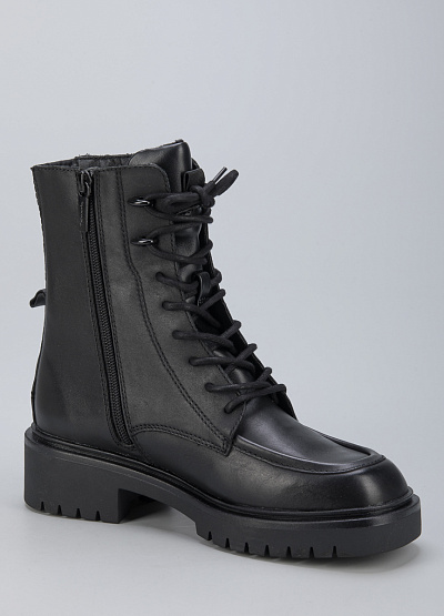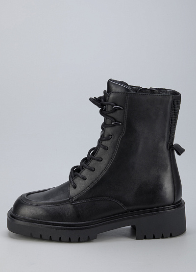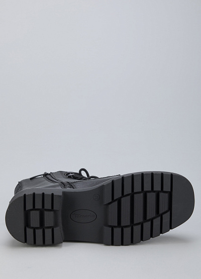 • Женские ботинки из экокожи от бренда Tamaris. Закругленный носок. Открытая шнуровка в тон. Петли для подтягивания сзади. Массивная рифленая подошва на низком каблуке.