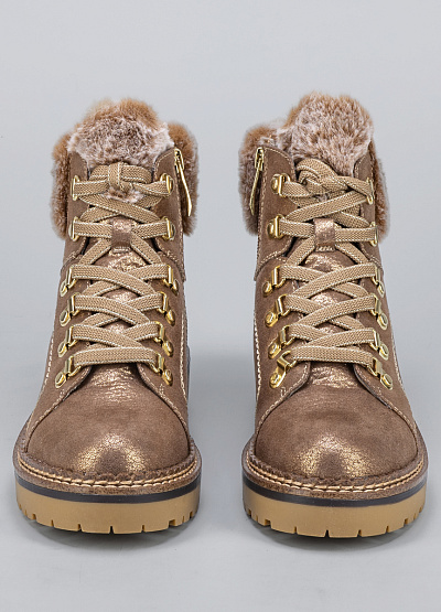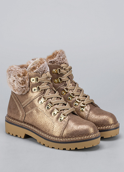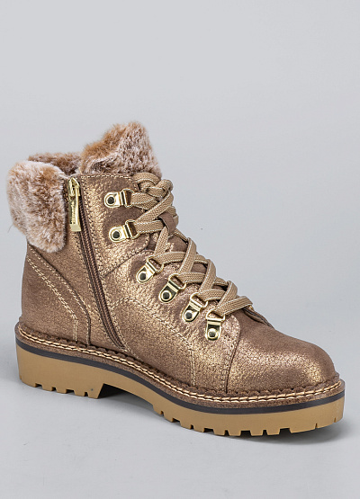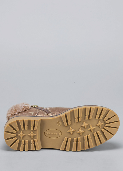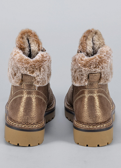• Женские ботинки бронзового цвета из текстиля от бренда Tamaris. Модель на плоской подошве гарантирует идеальную поддержку стопы, делая каждую вашу прогулку легкой и комфортной. Открытая шнуровка в тон. Меховая отделка. Их элегантный дизайн подчеркнет вашу индивидуальность и стиль.