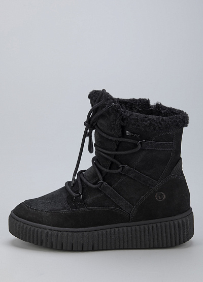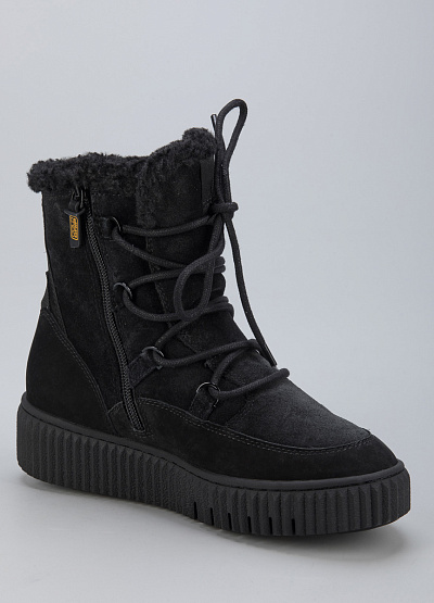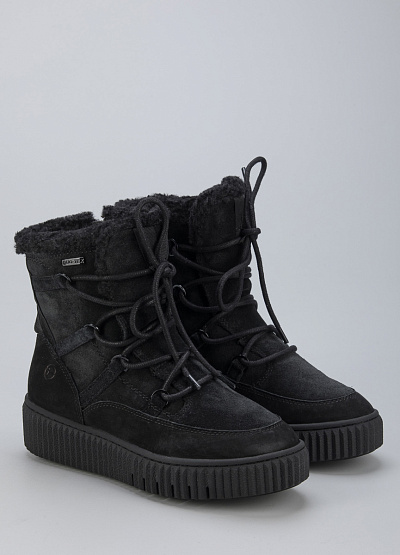 • Женские ботинки от бренда Tamaris. Закругленный носок. Боковая молния. Открытая шнуровка в тон. Плоская рифленая подошва.