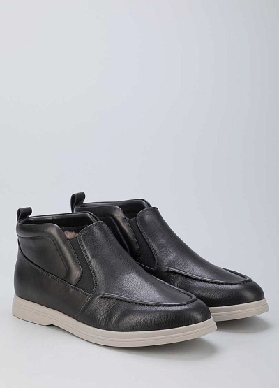 • Женские ботинки из натуральной кожи от бренда Loretta Very. Закругленный носок. Эластичные вставки по бокам. Петли для подтягивания сзади. Плоская подошва.