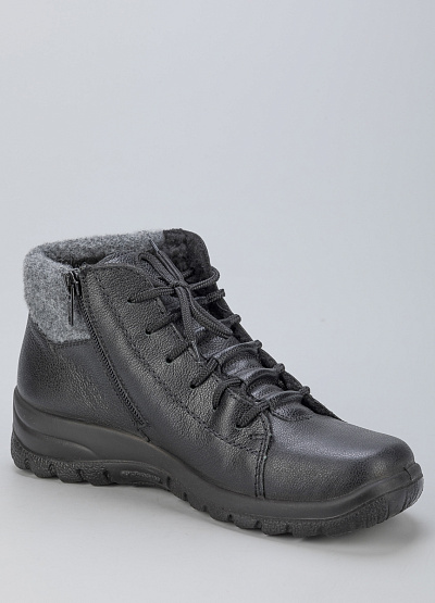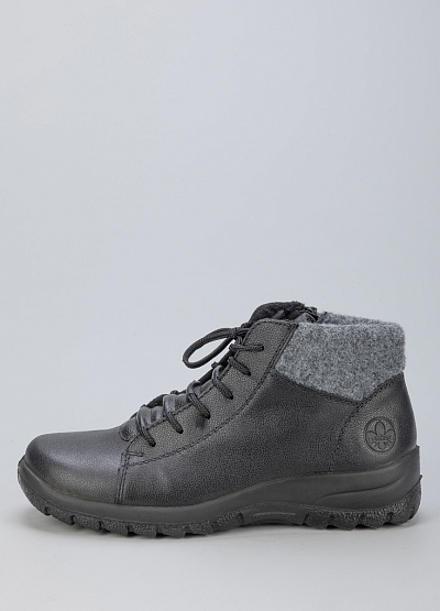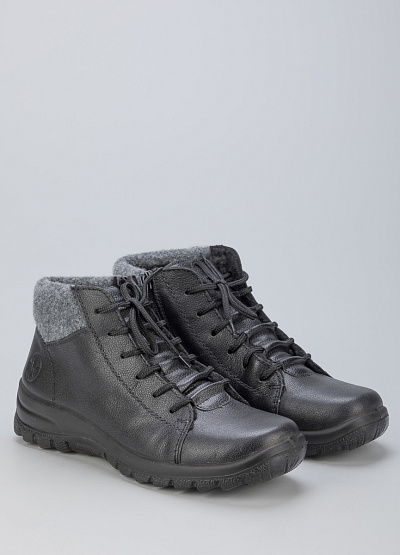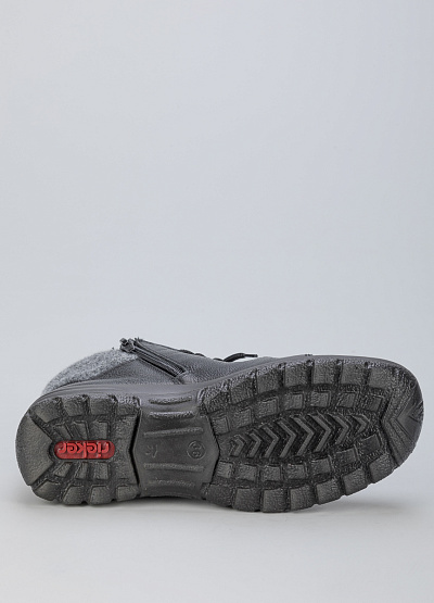 • Женские полуботинки из натуральной кожи и экокожи от бренда Rieker. Закругленный носок. Открытая шнуровка в тон. Боковая молния. Логотип сбоку. Массивная рифленая подошва.