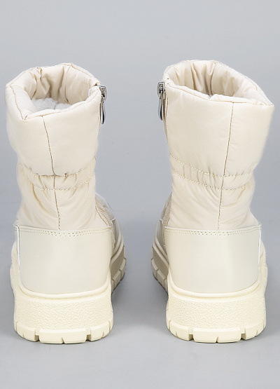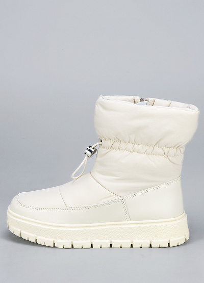 • Женские дутыши белого цвета из экокожи и текстиля от бренда Thomas Graf. Модель с высокой голенью. Закругленный носок.  Ваш образ станет с ними более стильным и женственным.