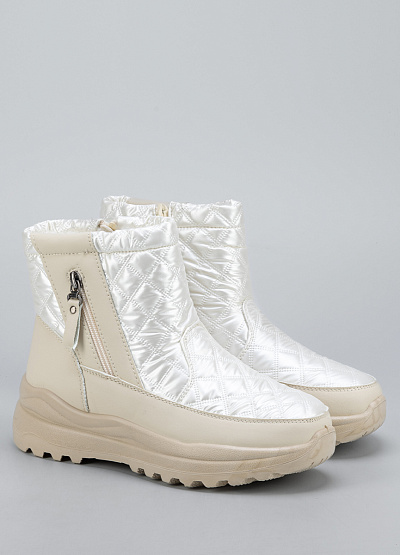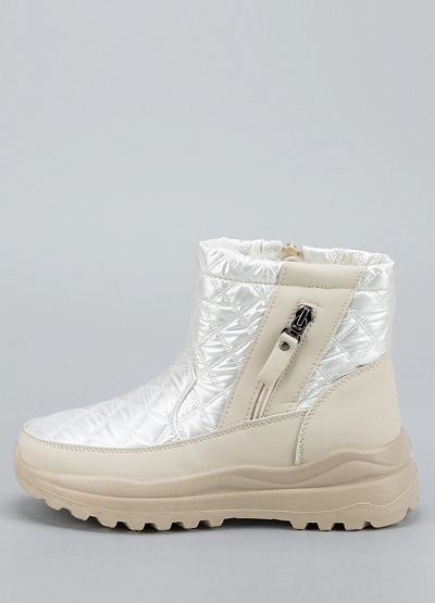 • Стильные зимние женские дутыши в молочно-белом цвете сочетают комфорт, тепло и современный внешний вид. Простёганный глянцевый верх защищает от ветра и влаги, а мягкая внутренняя отделка сохраняет тепло даже в самые холодные дни. Удобная боковая молния облегчает надевание и обеспечивает плотное прилегание. Утолщённая рельефная подошва гарантирует хорошее сцепление с поверхностью и устойчивость на снегу и льду.