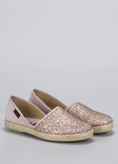 • Нежные эспадрильи с мерцающими пайетками — идеальное решение для тех, кто хочет добавить сияния в повседневный лук. Лёгкий текстильный верх гармонирует с джутовой окантовкой подошвы, создавая воздушное настроение. Комфортная посадка и мягкая стелька обеспечивают удобство на весь день.