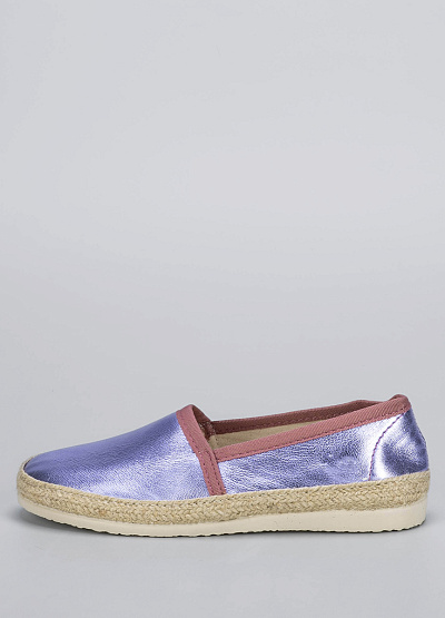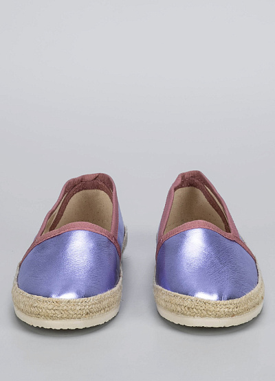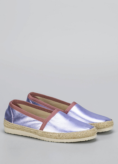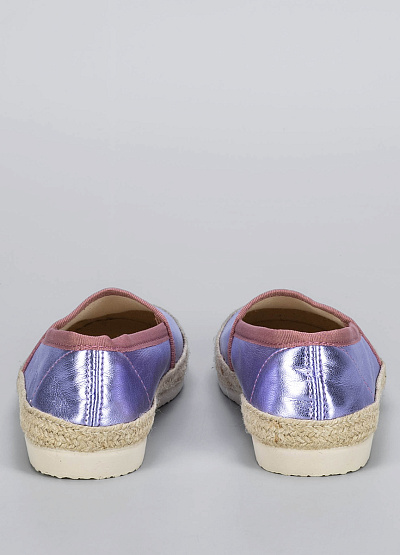 • Эспадрильи с металлизированным блеском — смелый и модный акцент для летнего гардероба. Нежный сиреневый оттенок с розовой отделкой делает образ свежим и женственным, а классическая плетёная подошва сохраняет дух расслабленного летнего стиля. Отлично сочетаются с джинсами, сарафанами и юбками в отпускных образах.