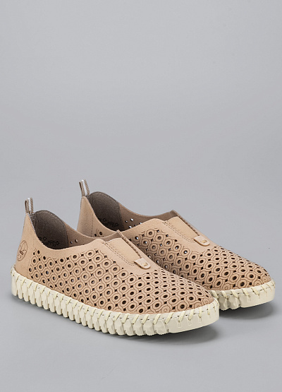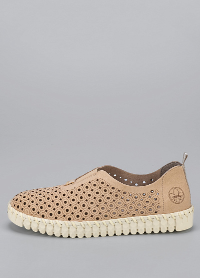 • Женские эспадрильи бежевого цвета от бренда Rieker. Рифленая подошва делает их устойчивыми и комфортными для ежедневной носки. Они идеально подойдут для выхода по делам, что позволит вам почувствовать настоящий комфорт. Сквозная перфорация позволит стопе дышать целый день и отводить лишнюю влагу.