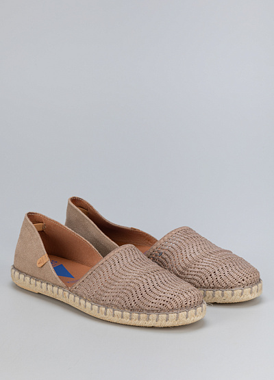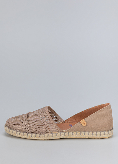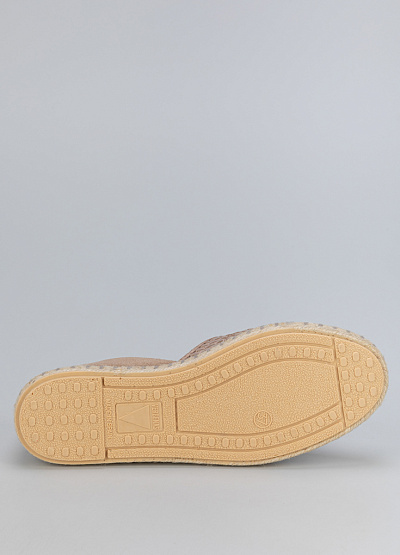 • Женские эспадрильи бежевого цвета от бренда Verbenas. Эта модель поможет создать яркий образ за счет сетчатой отделки. Поверхность очень мягкая, эластичная и хорошо облегает стопу. Они подойдут для повседневной носки — в них будет комфортно даже во время активного движения.