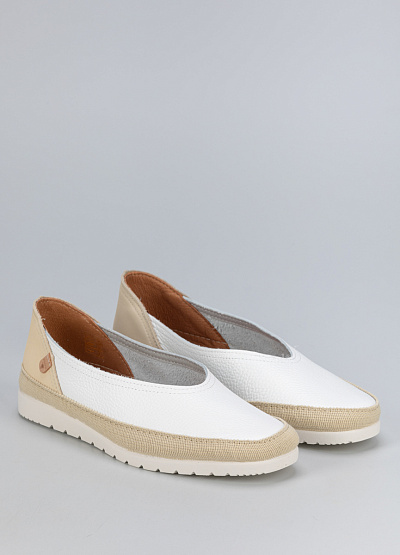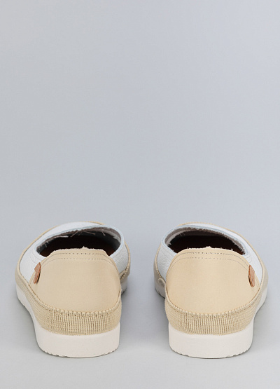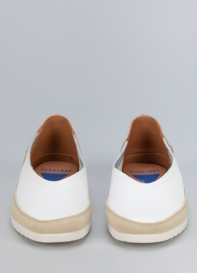 • Женские эспадрильи белого цвета из натуральной кожи от бренда Verbenas. Эта модель поможет создать яркий и свежий повседневный образ. Они подойдут для повседневной носки — в них будет комфортно даже во время активного движения.