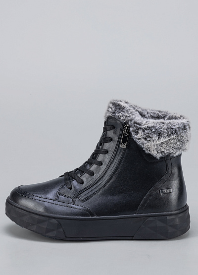 • Женские кеды черного цвета из натуральной кожи от бренда Caprice. Модель имеет классический дизайн, который можно сочетать с кэжуал, классическим, спортивным и городским стилем. Широкая текстурная подошва придает уникальности. Шнуровка надежно фиксирует стопу. Отделка из искусственного меха защитит от холода. Эта модель предназначенная для тех, кто ищет обувь, комфортно адаптирующуюся к ноге.