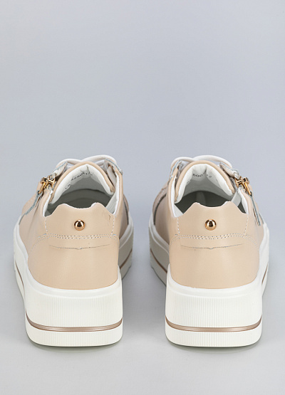 • Женские кеды белого цвета из кожи, в стиле casual, подходят для повседневной носки и активного отдыха.