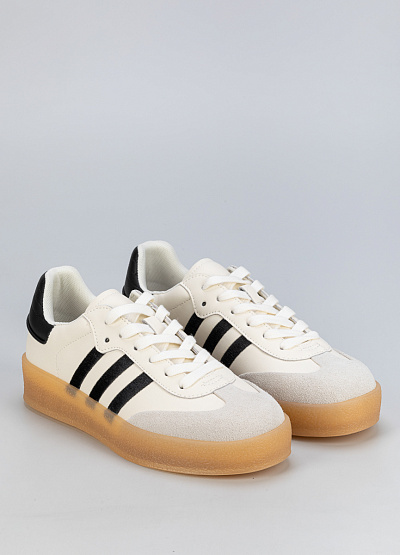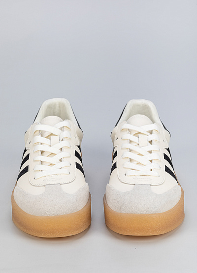 • Мужские бежево-белого кроссовки с черными акцентами из кожи и замши в стиле casual, подходят для повседневной носки и активного отдыха.