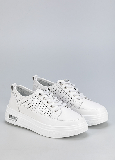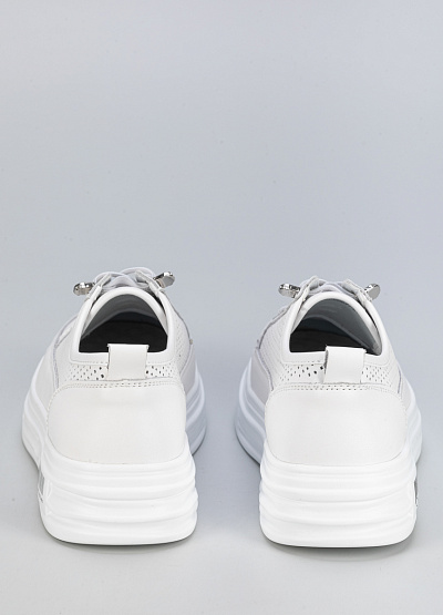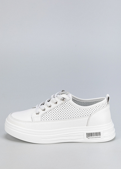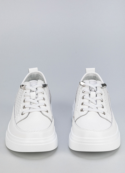 • Женские белые кроссовки на платформе – стильная и удобная модель для повседневного образа. Выполнены из натуральной кожи с перфорацией, что обеспечивает комфорт и воздухопроницаемость. Высокая подошва визуально удлиняет ноги и придает современный вид.