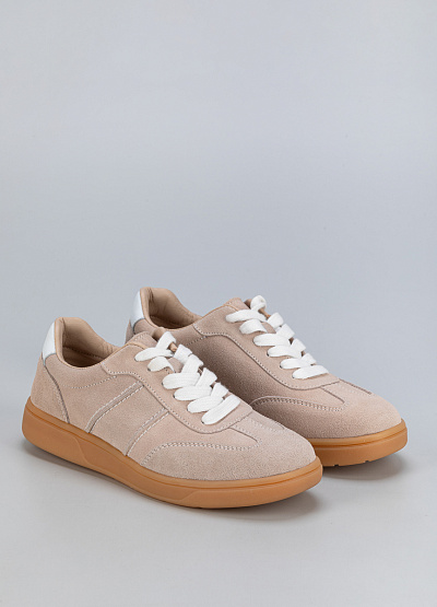 • Бежевые кеды в стиле casual — универсальное решение на каждый день.