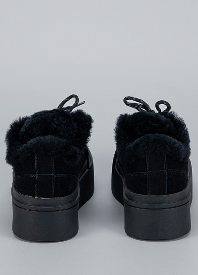 • Женские зимние кеды Franco Manatti в классическом чёрном цвете — универсальная модель, объединяющая стиль и комфорт. Выполненные из натуральной замши, они имеют мягкую меховую подкладку, обеспечивающую тепло и уют в холодное время года. Высокая платформа придаёт образу современный силуэт и визуально удлиняет ноги, а плотная подошва с амортизацией гарантирует удобство при ходьбе. Дизайн дополнен прочной шнуровкой и аккуратной прострочкой по краям.