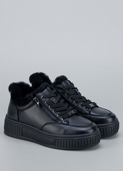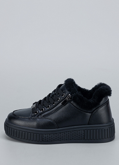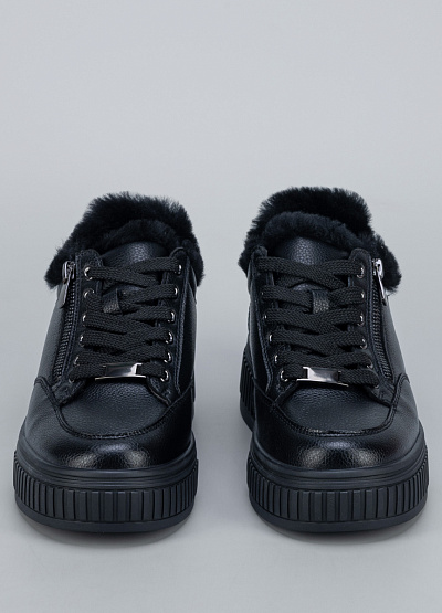 • Женские зимние кеды Franco Manatti в чёрном цвете — стиль и комфорт в одном образе. Модель выполнена из прочной искусственной кожи с фактурной поверхностью и украшена боковой молнией для удобства. Внутри — плотный искусственный мех, который надёжно сохраняет тепло даже в холодную погоду. Гибкая подошва с рифлением обеспечивает устойчивость, а шнуровка позволяет подстроить посадку под ногу.