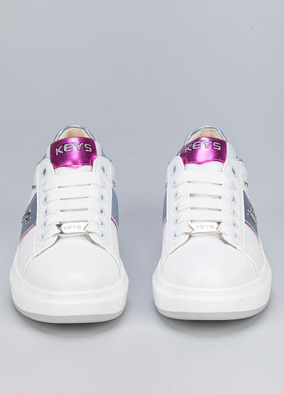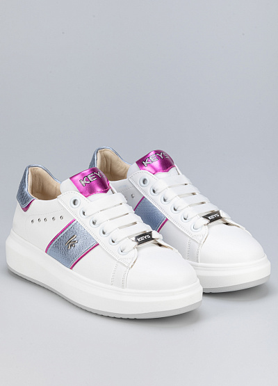 • Женские кеды белого цвета из экокожи от бренда Keys. Эта модель поможет создать яркий и свежий повседневный образ. Язычек, боковая часть и пятка украшены логотипом. Они подойдут для повседневной носки — в них будет комфортно даже во время активного движения.