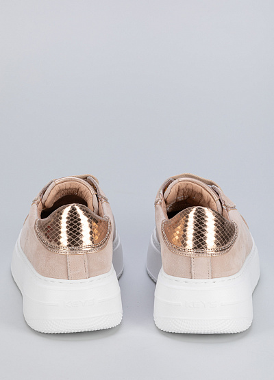 Женские кеды бежевого цвета из текстиля и маты от бренда Keys. Модель имеет классический дизайн, который можно сочетать с кэжуал, классическим, спортивным и городским стилем. Широкая текстурная подошва придает уникальности. Шнуровка надежно фиксирует стопу. Заднюю часть украшает принт в виде логотипа бренда. Эта модель предназначенная для тех, кто ищет обувь, комфортно адаптирующуюся к ноге.