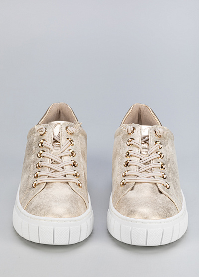 • Женские стильные кеды в золотистом оттенке придают образу элегантность и современный шарм. Универсальный дизайн делает их идеальным выбором для прогулок и активного дня.