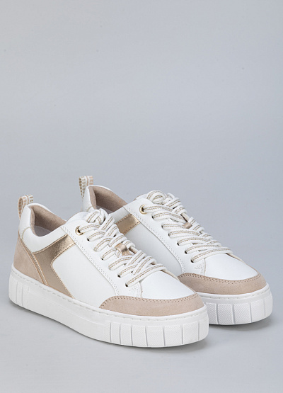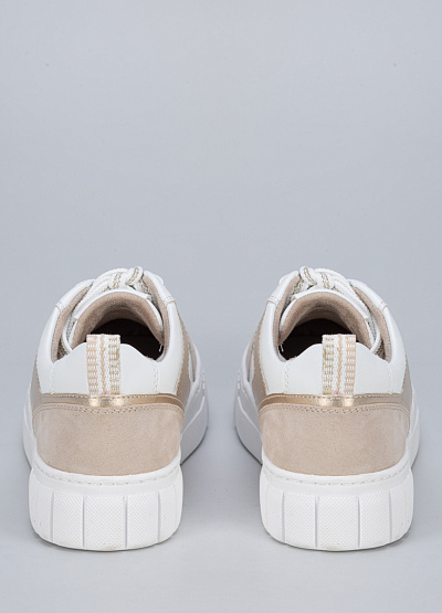 • Женские кеды бело-золотистого цвета из текстиля и экокожи от бренда Marco Tozzi. Модель имеет классический дизайн, который можно сочетать с кэжуал, классическим, спортивным и городским стилем. Широкая подошва делает шаг уверенным, а петли для подтягивания сзади удобны при надевании. Эта модель предназначенная для тех, кто ищет обувь, комфортно адаптирующуюся к ноге.