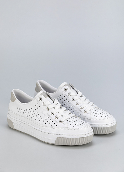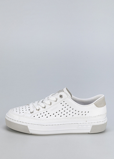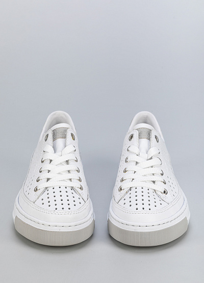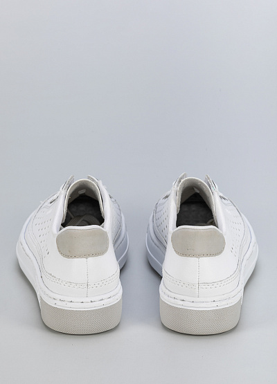 Белые кожаные кеды с перфорацией — лаконичное решение для летнего гардероба.