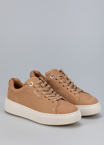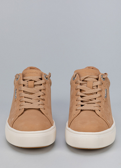 • Женские кеды бежевого цвета из натуральной кожи от бренда Tamaris. Модель имеет классический дизайн, который можно сочетать с кэжуал, классическим, спортивным и городским стилем. Эта модель предназначенная для тех, кто ищет обувь, комфортно адаптирующуюся к ноге.