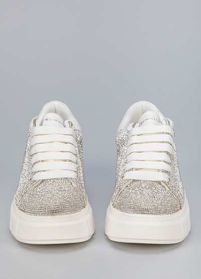 • Женские кеды серебристого цвета из экокожи от бренда Tamaris. Модель имеет классический дизайн, который можно сочетать с кэжуал, классическим, спортивным и городским стилем. Эта гламурная модель с акцентом на стразы и широкую подошву. Кеды будут красивым завершением любого образа.