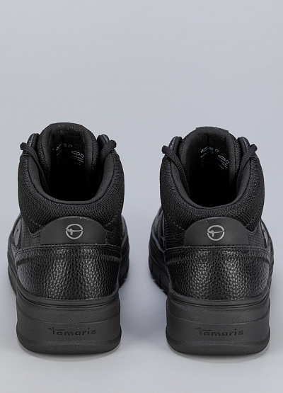 • Женские кеды черного цвета от бренда Tamaris. Модель имеет классический дизайн, который можно сочетать с кэжуал, классическим, спортивным и городским стилем. Широкая текстурная подошва придает уникальности. Шнуровка надежно фиксирует стопу. Боковую часть украшает принт в виде логотипа бренда. Эта утепленная модель точно защитит вас от холода. Она предназначена для тех, кто ищет обувь, комфортно адаптирующуюся к ноге.