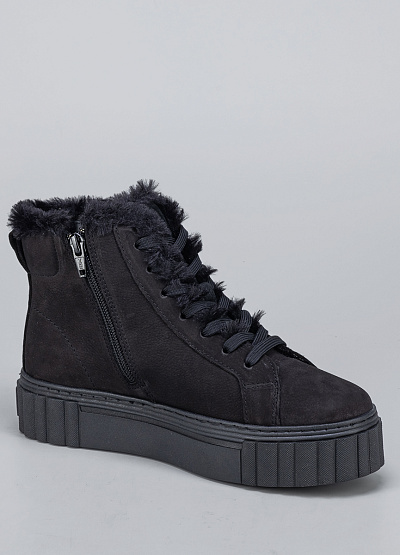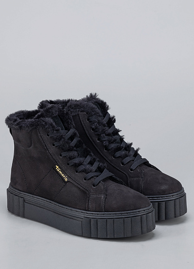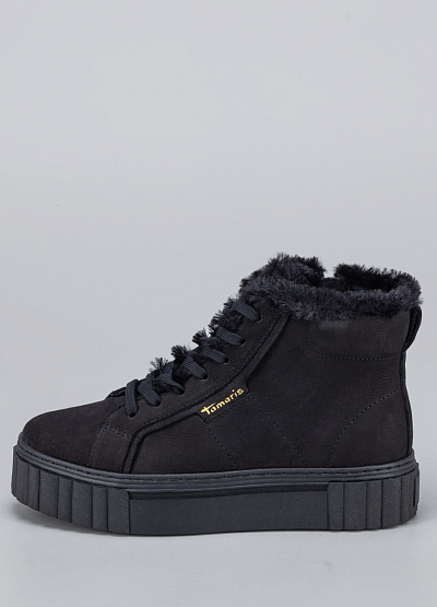 • Женские кеды из нубука черного цвета от бренда Tamaris. Модель имеет модный дизайн, который можно сочетать с кэжуал, классическим, спортивным и городским стилем. Широкая подошва придает уникальности и защищает от холода. Открытая шнуровка в тон. Меховая отделка обеспечивает тепло. Модный дизайн усилит характер и подчеркнет индивидуальность.