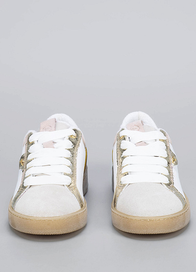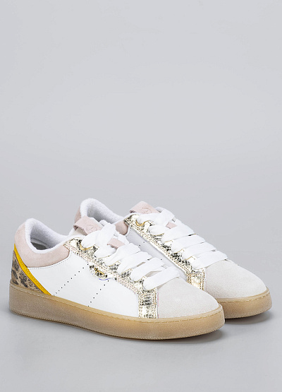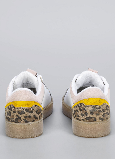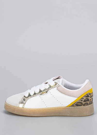 • Стильные и дерзкие женские кроссовки, сочетающие в себе комфорт и трендовый дизайн. Белый корпус дополнен золотистой вставкой и акцентом с леопардовым принтом на пятке. Яркая жёлтая линия добавляет динамики и делает модель запоминающейся. Удобная шнуровка и мягкая внутренняя отделка обеспечивают комфорт в течение всего дня. Идеальны для повседневных образов, прогулок, путешествий и стильных выходов в город.