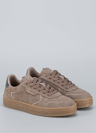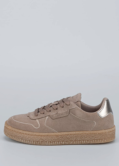 • Стильные женские кеды выполнены из мягкой замши в универсальном бежевом оттенке.